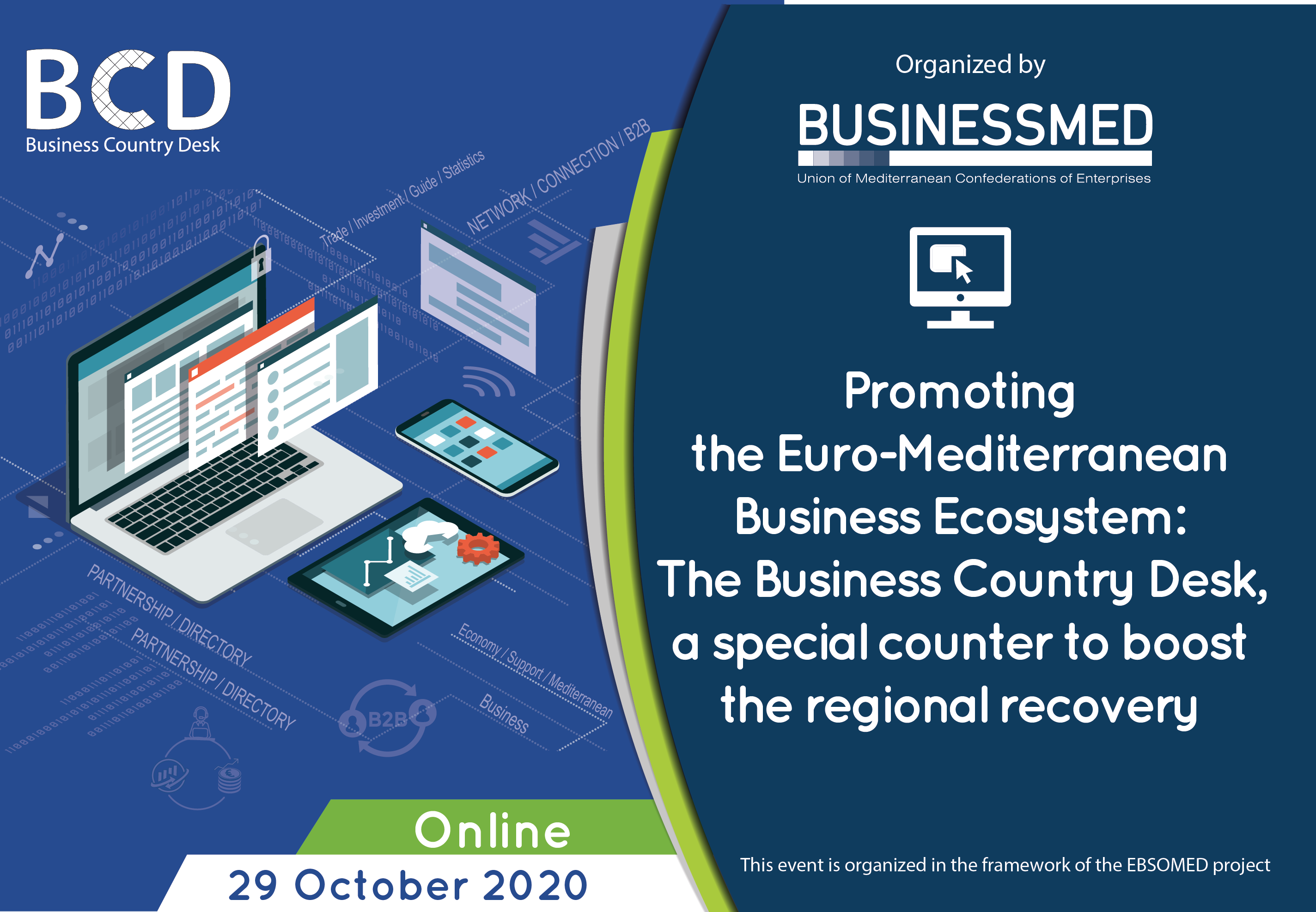 The Business Country Desk (BCD) is designed by BUSINESSMED and it is one of the key instruments implemented within the EBSOMED project.